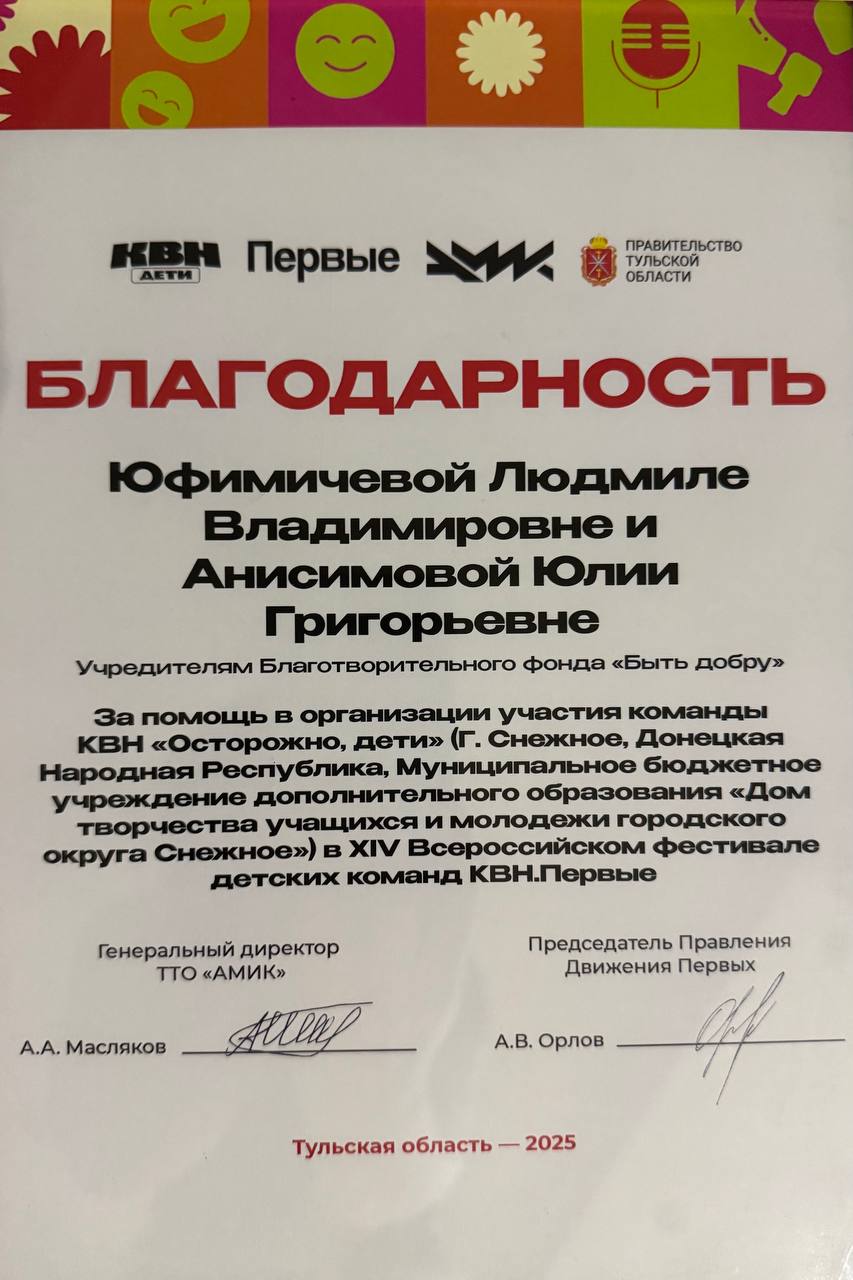 Совсем недавно наш Фонд побывал на по-настоящему важном событии — золотом юбилее, 50-летии Дома творчества города Снежное (ДНР). Здесь живёт особенная атмосфера — добра, поддержки, творчества и света. Света, который особенно ценен сегодня, когда вдохновлять и раскрывать таланты приходится в непростых условиях.