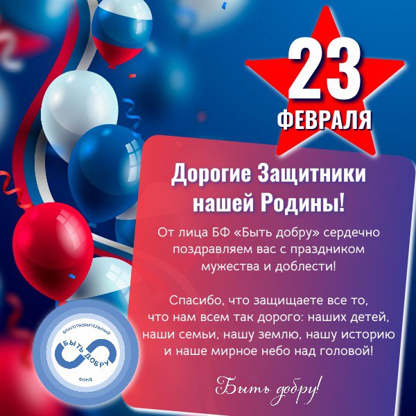 От лица Благотворительного фонда «Быть добру» сердечно поздравляем вас с праздником мужества и доблести!